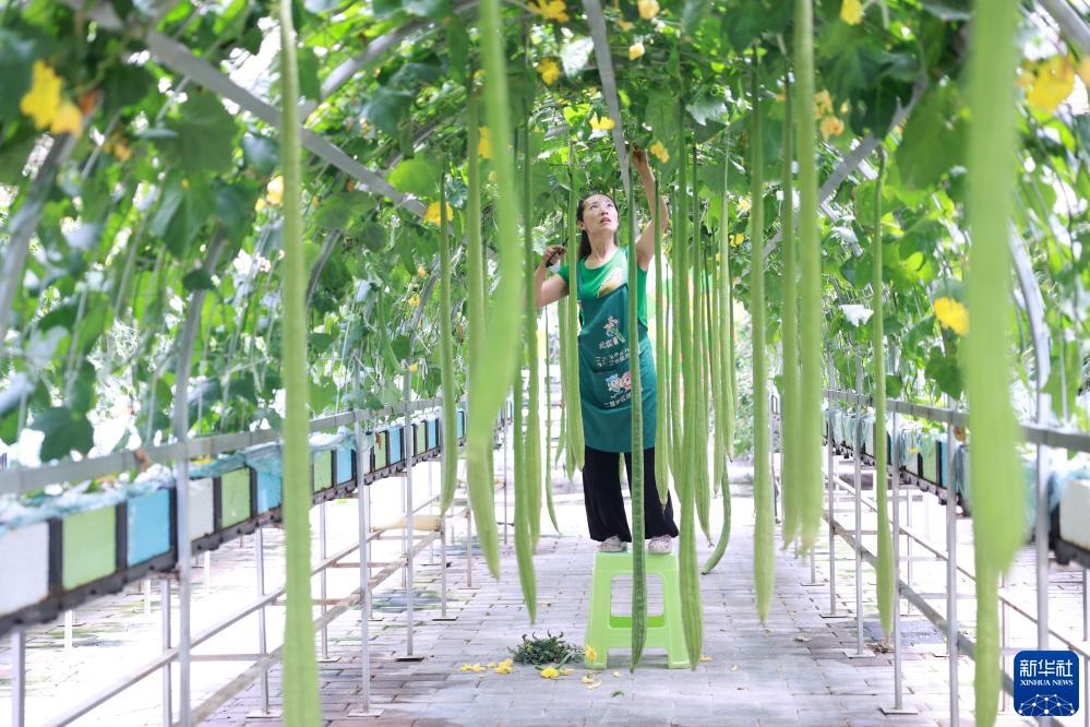 柏楊林街道生態(tài)農業(yè)觀(guān)光園,搬遷居民在勞作(7月13日攝)。