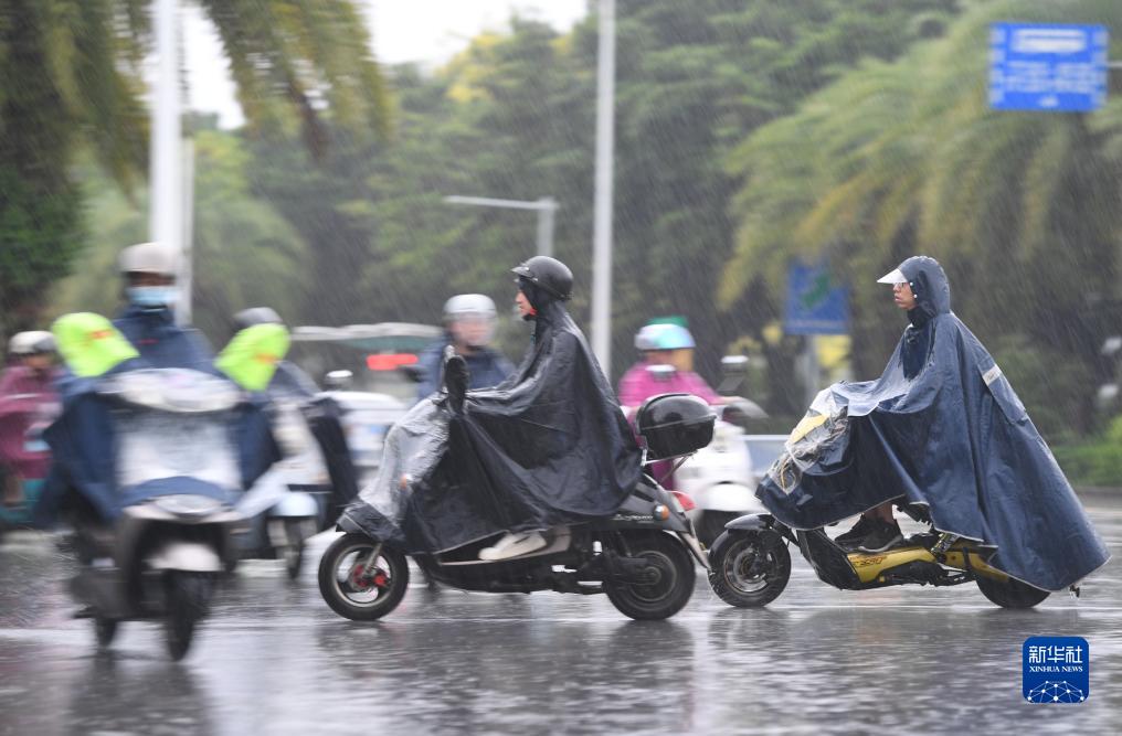 7月18日,在廣西南寧市濱湖路,市民冒著(zhù)臺風(fēng)帶來(lái)的風(fēng)雨出行。