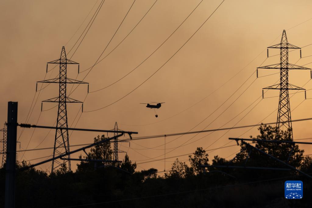 7月17日,在希臘雅典郊外的盧特拉基附近,消防直升機出勤滅火。