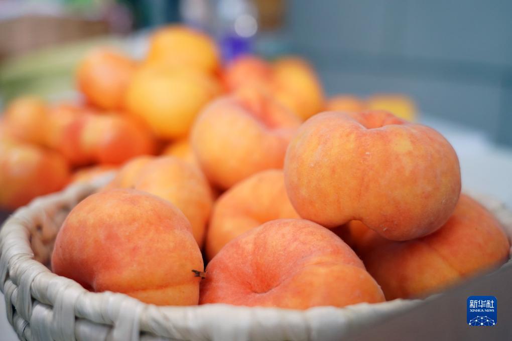 7月18日在2023北京·平谷鮮桃季“土特產(chǎn)”市集現場(chǎng)拍攝的桃子。