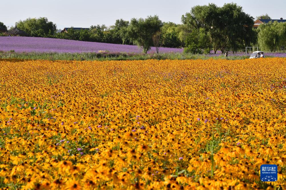 寧夏薰衣草莊園盛開(kāi)的九葉菊(7月15日攝)。