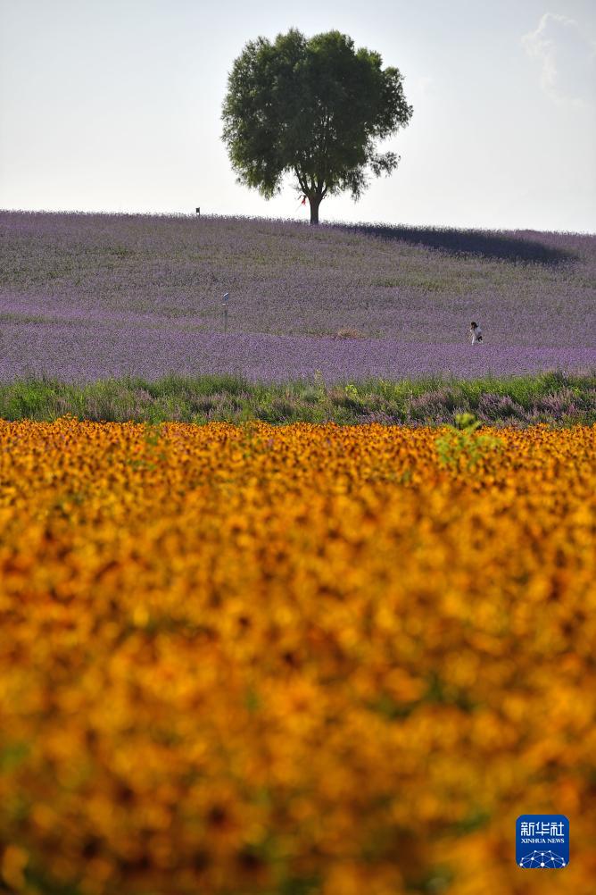寧夏薰衣草莊園盛開(kāi)的九葉菊(7月15日攝)。
