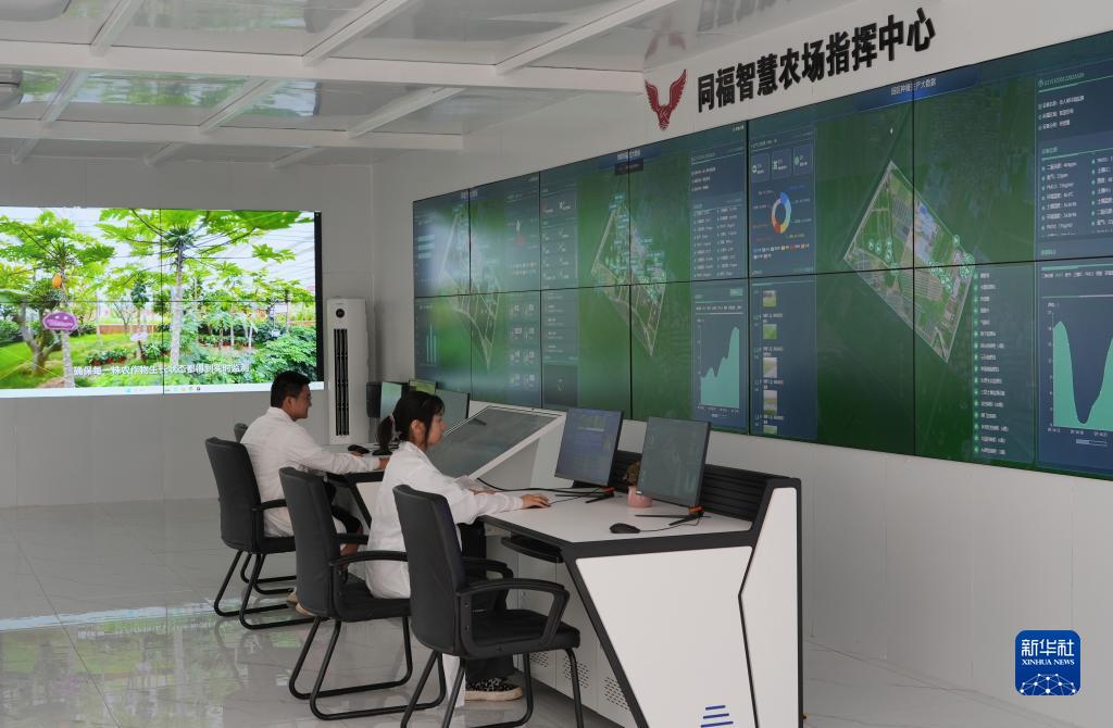 7月18日,在正定縣塔元莊同福智慧農場(chǎng),員工在指揮中心平臺查看農場(chǎng)運行情況。