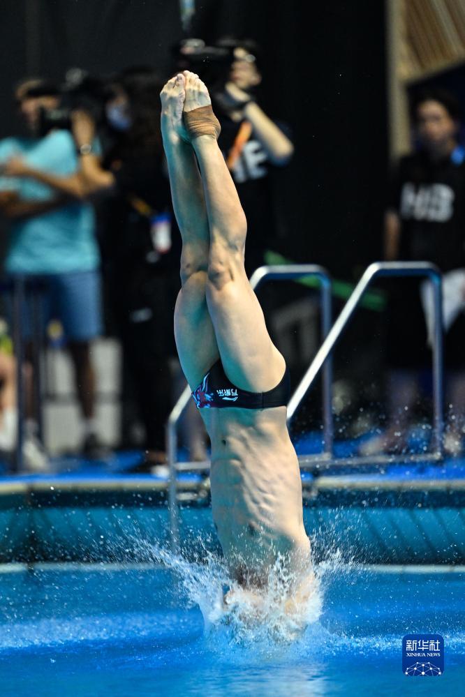 7月18日,中國選手鄭九源在單人三米板比賽中。
