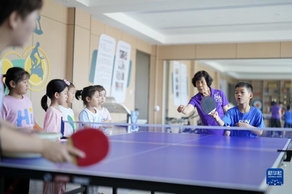 7月19日,孩子們在河北省唐山市豐南區新興社區開(kāi)辦的“愛(ài)心暑托班”上學(xué)習打乒乓球。