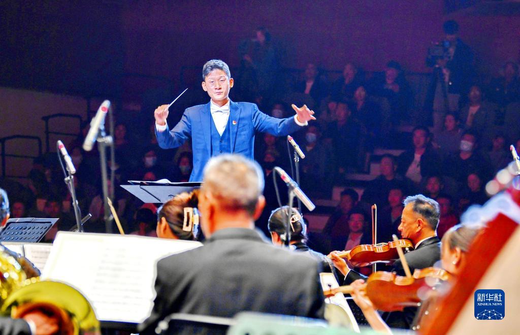指揮普布次仁指揮樂(lè )隊演奏《我的祖國》(7月18日攝)。