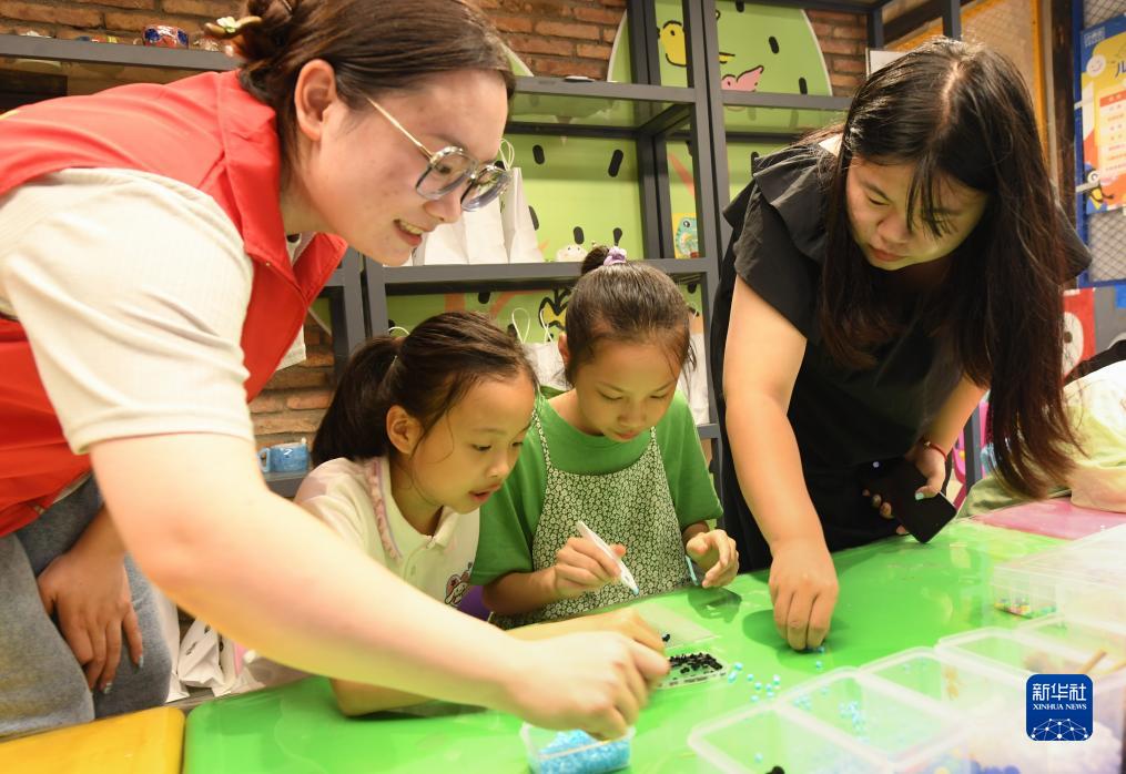 7月19日,青少年在小西街手作生活街體驗“拼豆”制作。