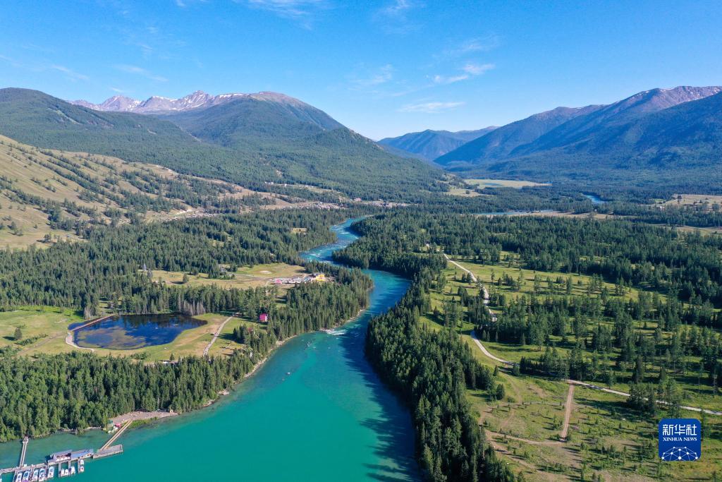 7月19日拍攝的新疆阿勒泰地區喀納斯景區風(fēng)光(無(wú)人機照片)。