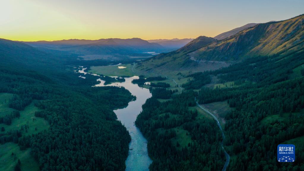 7月19日拍攝的新疆阿勒泰地區喀納斯景區風(fēng)光(無(wú)人機照片)。