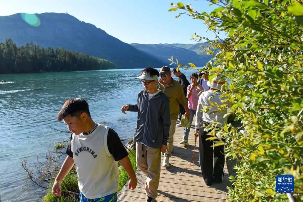 盛夏七月,位于新疆阿勒泰地區布爾津縣的喀納斯景區迎來(lái)旅游黃金期。游客乘船游湖、林間漫步、草原踏青,暢享盛夏清涼,感受秀美風(fēng)光。