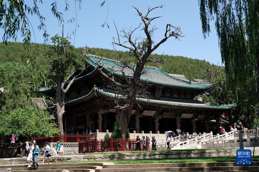 晉祠圣母殿和旁邊的古柏(7月4日攝)。