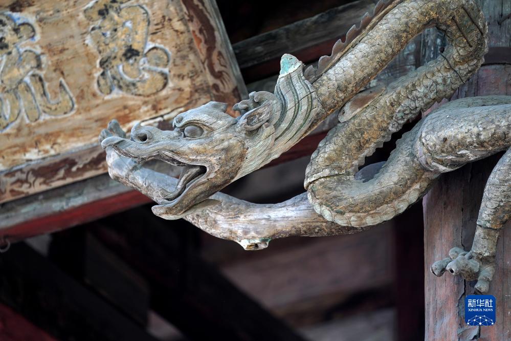 晉祠圣母殿的建筑構件(7月4日攝)。