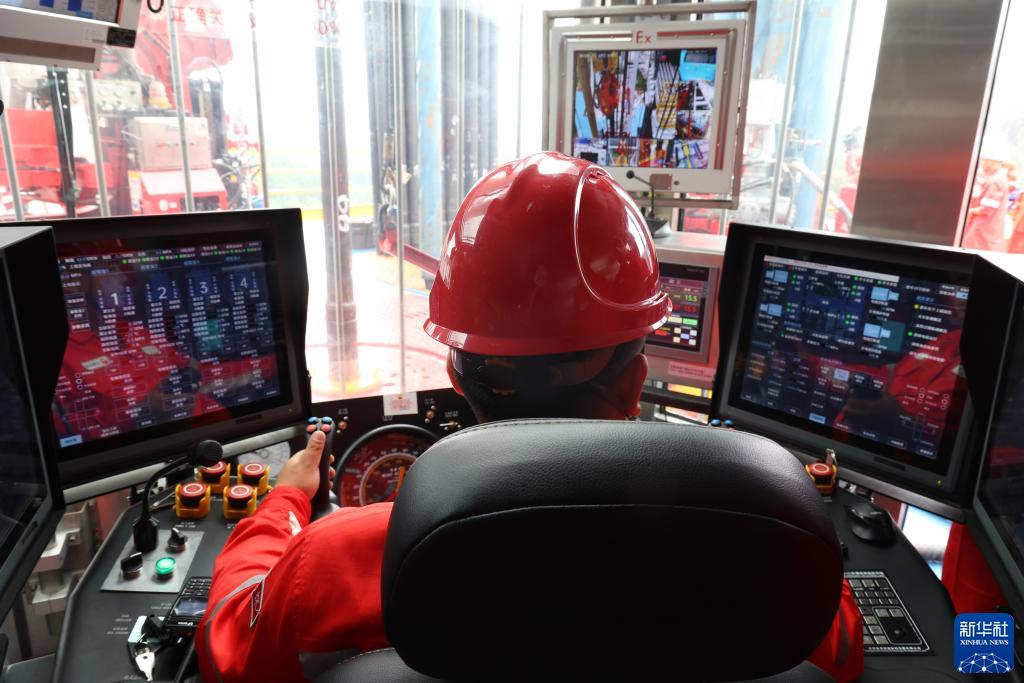 7月20日,“深地川科1井”在四川省劍閣縣開(kāi)鉆,司鉆在操作控制臺。