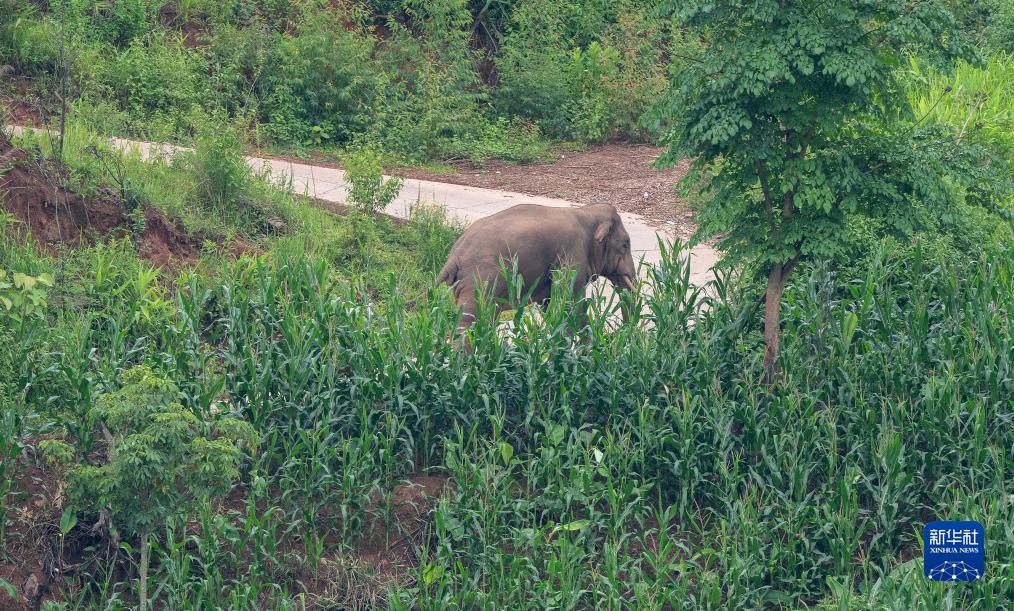 7月19日,一頭亞洲象在公路上行走。