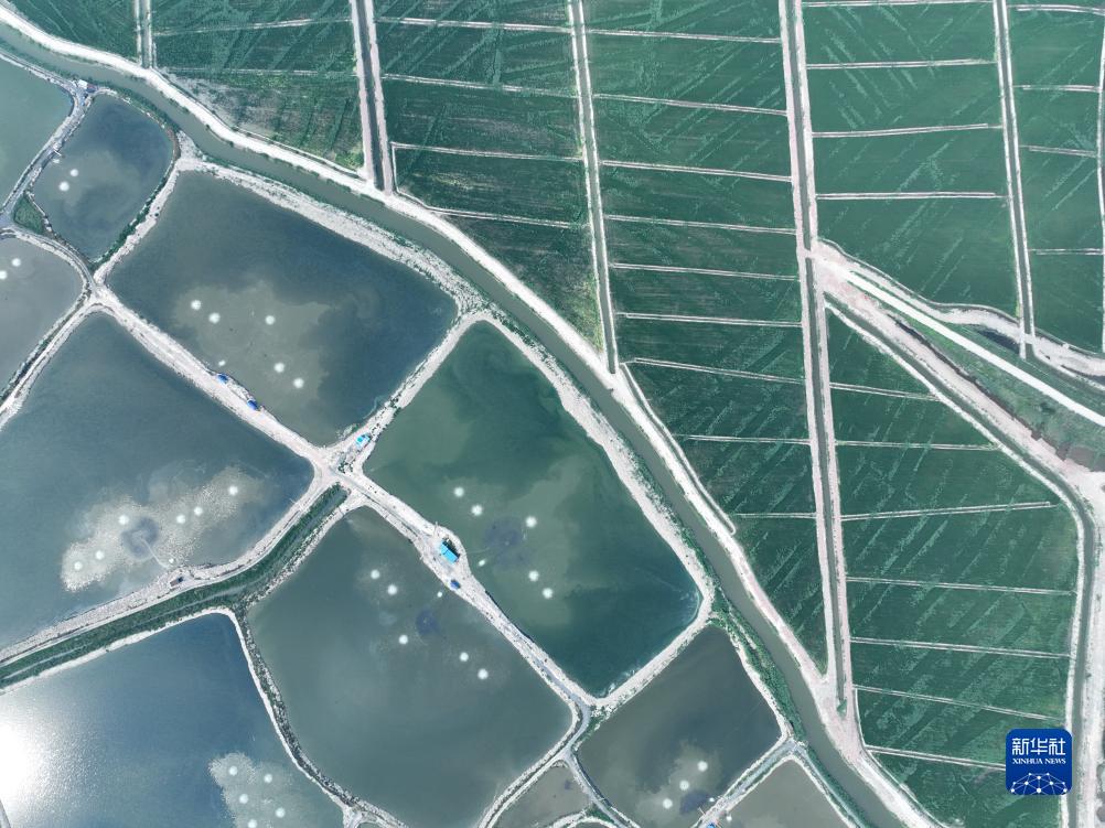 河北省唐山市豐南區黑沿子鎮由鹽堿地改良而成的水稻田(7月20日攝,無(wú)人機照片)。