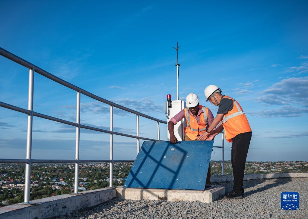 6月12日,凱爾文(左)與同事在坦桑尼亞姆萬(wàn)扎省布斯韋盧檢查供水項目高位蓄水池。