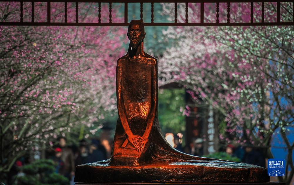 這是成都杜甫草堂里的杜甫雕像(2月6日攝)。