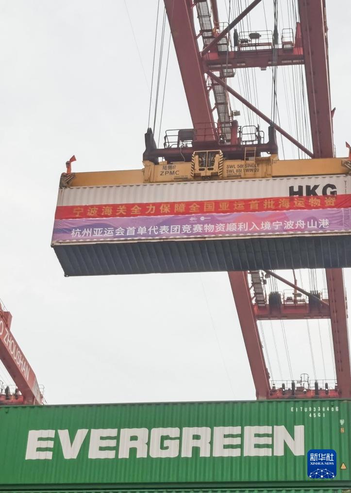 當日,中國香港代表團首批參賽制服和競賽物資分別從杭州蕭山國際機場(chǎng)和寧波舟山港通關(guān),這標志著(zhù)杭州亞運會(huì )首批代表團物資通過(guò)??諆陕愤\抵入境。