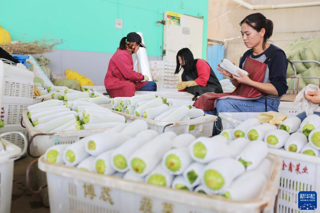 7月20日,在甘肅省定西市安定區內官營(yíng)鎮一家蔬菜交易市場(chǎng),工人在分級包裝蔬菜。