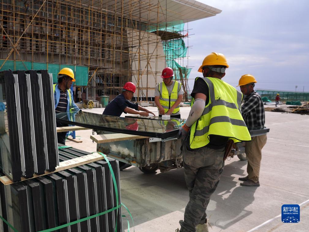 7月20日,在新疆奇臺江布拉克機場(chǎng),工人在搬運建筑材料。