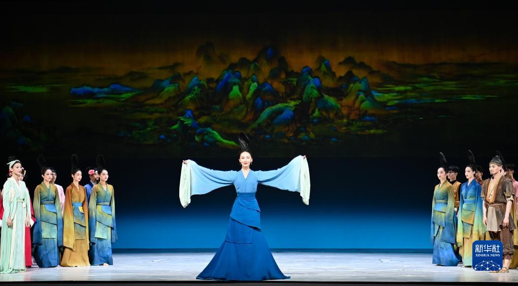 7月20日,中國東方演藝集團演員在烏魯木齊文化中心大劇院表演舞蹈詩(shī)劇《只此青綠》。