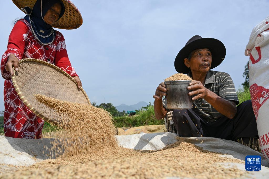 7月20日,農民在印度尼西亞西爪哇省茂物地區的鄉間收獲稻米。