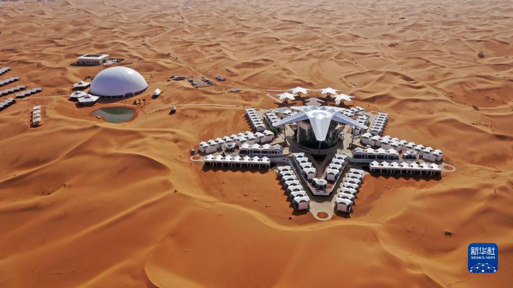 這是7月20日在騰格里沙漠拍攝的星星酒店(無(wú)人機照片)。