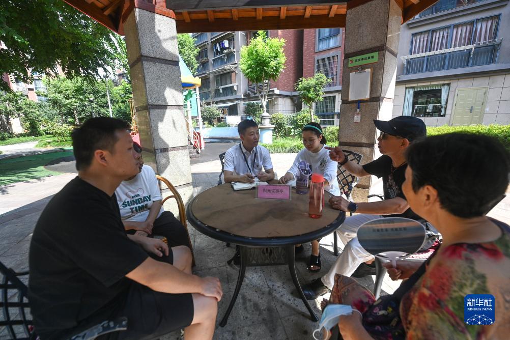 7月21日,在位于錦南街道水岸陽(yáng)光小區的陽(yáng)光議事廳,街道紀檢干部在聽(tīng)取居民們反映的問(wèn)題及意見(jiàn)。