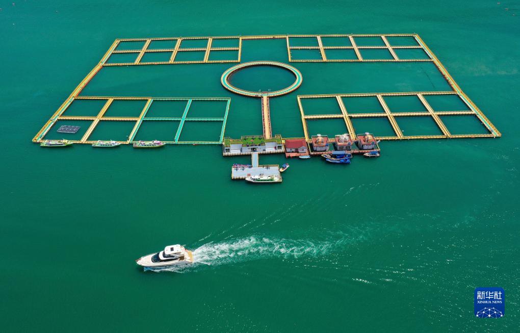 電動(dòng)游艇載著(zhù)游客領(lǐng)略寧德海上風(fēng)光(無(wú)人機照片,7月14日攝)。