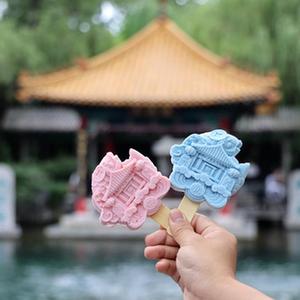 7月20日在山東省棗莊市臺兒莊古城拍攝古建筑造型文創(chuàng )雪糕。