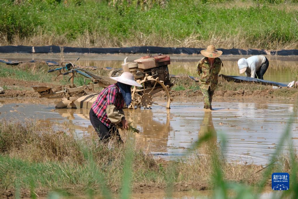 7月21日,農民在南寧市青秀區長(cháng)塘鎮平整田地。