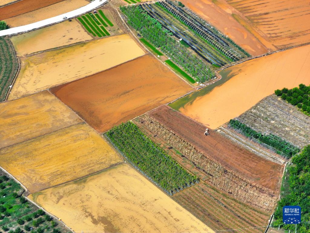 7月21日,農民在南寧市青秀區長(cháng)塘鎮耕田(無(wú)人機照片)。