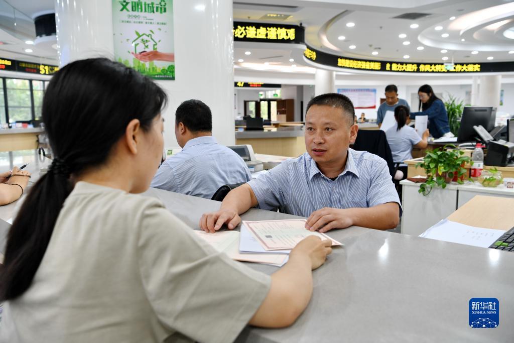 7月22日,河北省灤州市政務(wù)服務(wù)中心工作人員在為市民辦理業(yè)務(wù)。