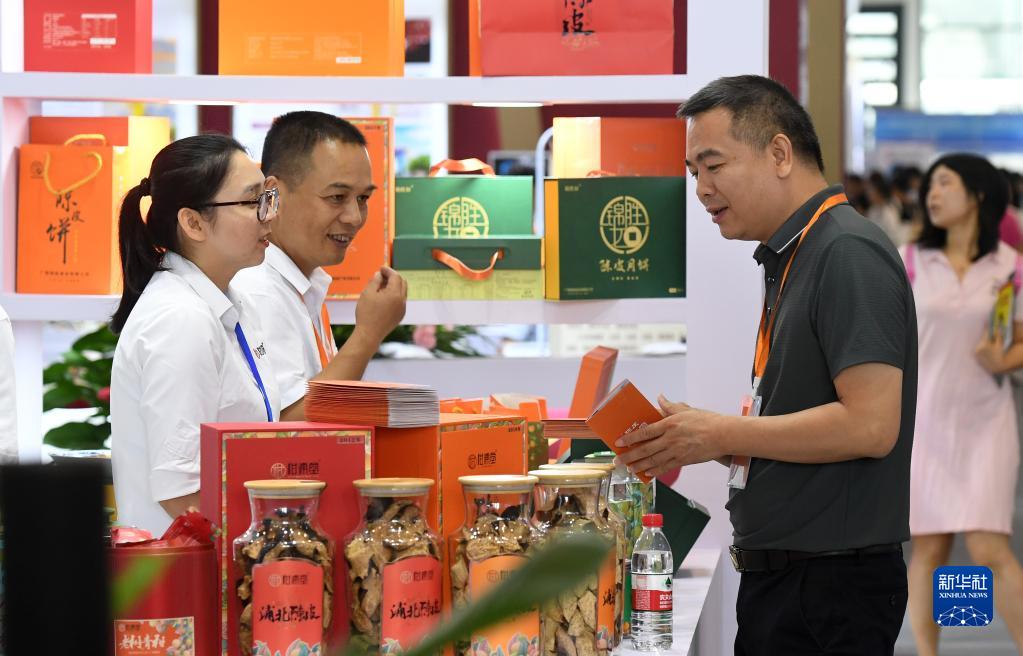 7月22日,在廣西南寧國際會(huì )展中心,人們在中醫藥產(chǎn)業(yè)展覽現場(chǎng)交流。