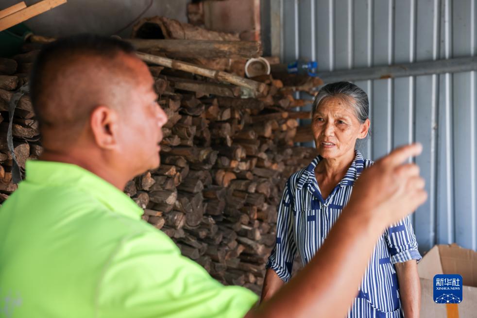7月20日,在云南省普洱市江城縣,刁發(fā)興(左)向村民通報象群活動(dòng)信息。