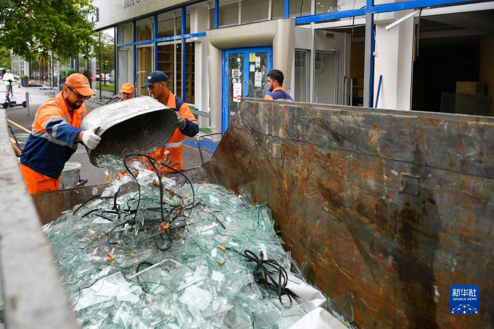 7月24日,在俄羅斯莫斯科,工作人員在遭無(wú)人機襲擊的建筑現場(chǎng)進(jìn)行清理工作。
