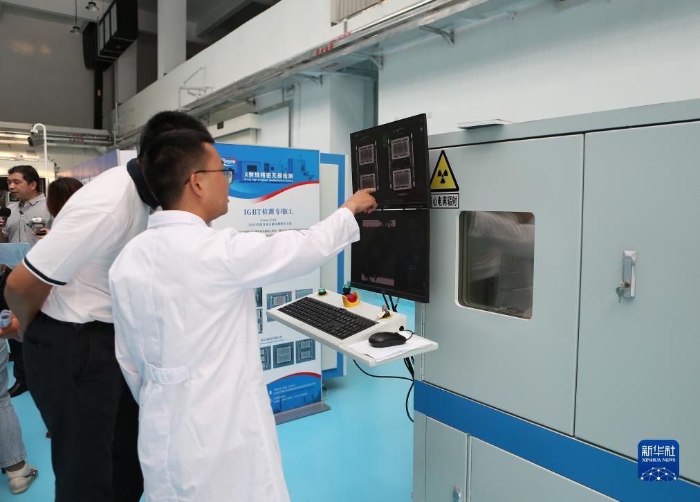 7月24日,在濟南中科核技術(shù)研究院,工作人員在講解X射線(xiàn)精密無(wú)損檢測設備。新華社記者 張浩波 攝
