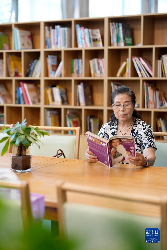 7月25日,老年人在河北省唐山市路北區橡樹(shù)灣社區養老服務(wù)中心閱讀。