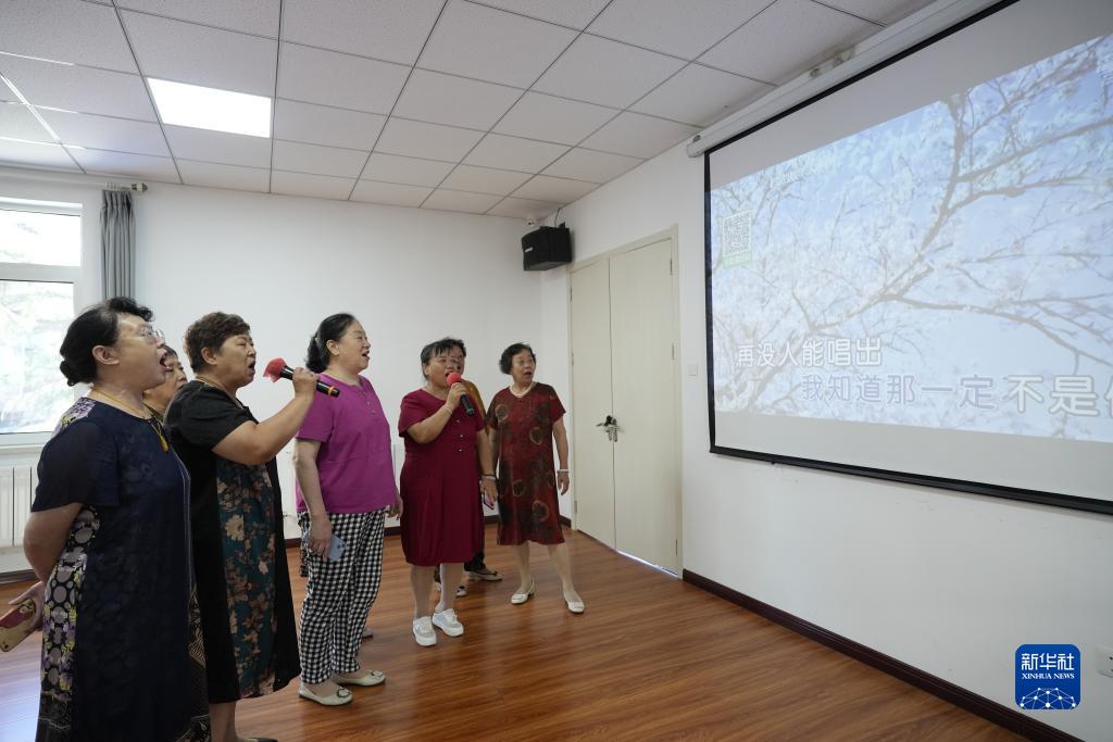 7月25日,老年人在河北省唐山市路北區煤研分院社區養老服務(wù)中心唱歌。