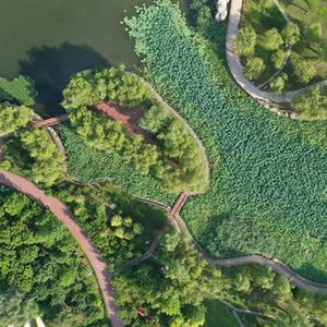 這是白溝新城一處“口袋公園”(7月25日攝,無(wú)人機照片)。