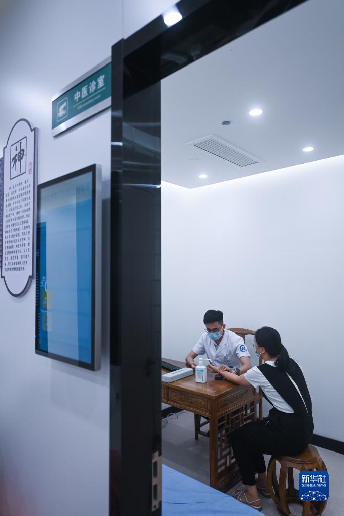 7月25日,在諸暨市浣東街道東盛社區衛生服務(wù)站的中醫診室內,醫生在進(jìn)行中醫診療。