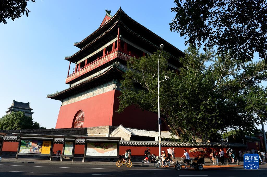 夏日北京鐘鼓樓(7月17日攝)。鐘鼓樓位于北京中軸線(xiàn)的最北端,兩樓前后縱置,氣勢雄偉。作為元、明、清三代都城的報時(shí)中心,至今已有700多年的歷史。