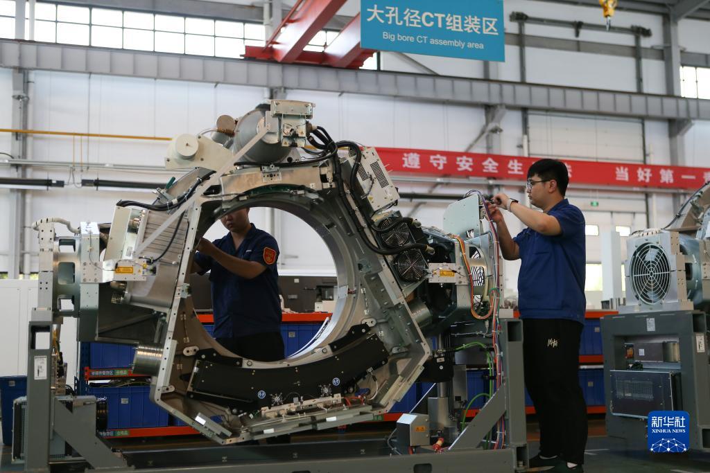 7月25日,在位于淄博市高新區的山東新華醫療器械股份有限公司,工作人員在車(chē)間組裝醫療設備。