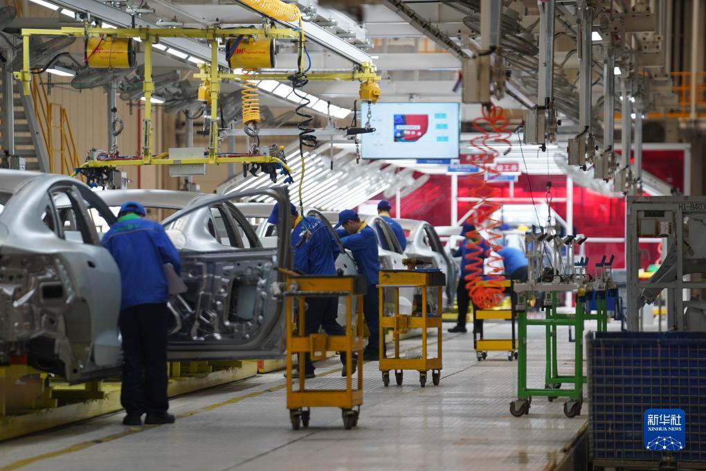 在位于江西省南昌市經(jīng)開(kāi)區的江鈴集團新能源汽車(chē)有限公司生產(chǎn)基地車(chē)間內,工人在生產(chǎn)線(xiàn)上作業(yè)(7月18日攝)。新華社記者 周密 攝