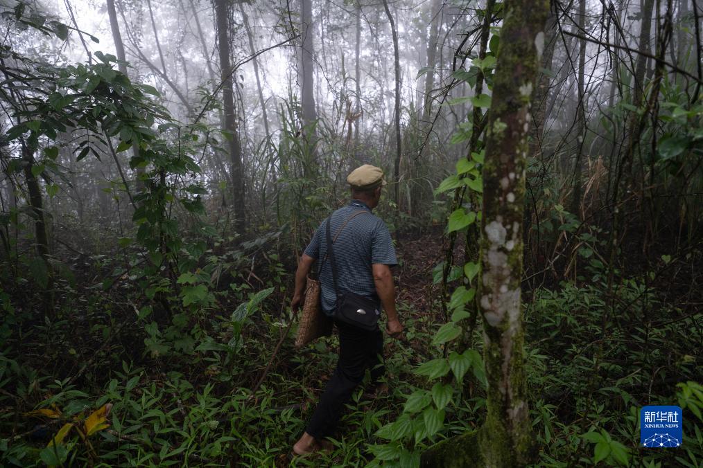 7月23日,張普忠在樹(shù)林中行走,準備前往自己曾經(jīng)住過(guò)的新民寨。新華社記者 費茂華 攝