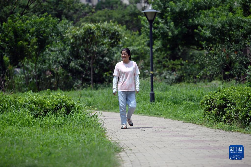 7月24日,陳蘭香在上岸后新家所在的小區里散步。新華社記者 周牧 攝