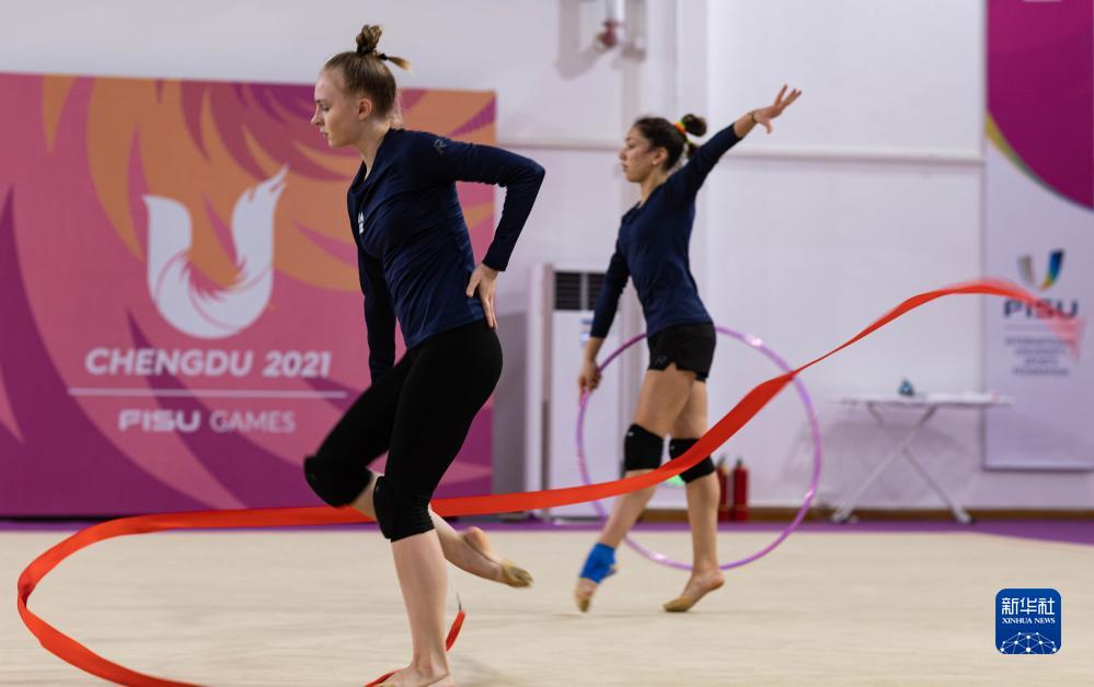 7月25日,芬蘭大學(xué)生藝術(shù)體操隊的選手在成都體育學(xué)院體操館訓練。