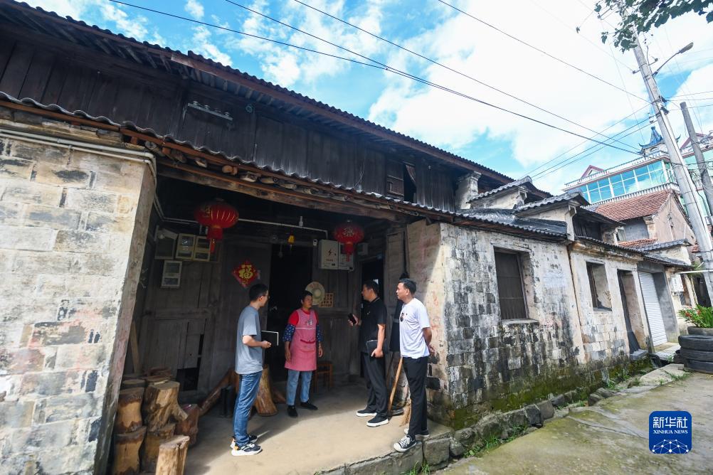 7月26日,東白湖鎮社會(huì )治理辦公室主任祝興達(左一)、東白湖鎮婁東村黨支部書(shū)記陳燕良(右二)、東白湖鎮婁東村網(wǎng)格長(cháng)吳偉均(右一)入戶(hù)了解村民宅基地指標糾紛的具體情況。