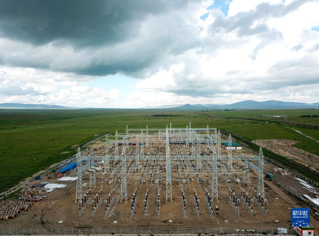 這是5月5日在肯尼亞馬查科斯郡拍攝的建設中的孔扎變電站(無(wú)人機照片)。