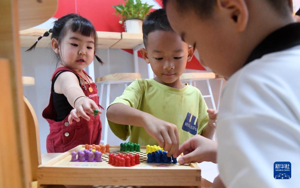7月26日,在廣西上橫高速公路建設項目部,來(lái)自安徽省安慶市的吳莯澄(左一)、安徽省宣城市的陳景華(左二)和廣西桂林市的游家寶在一起玩耍。